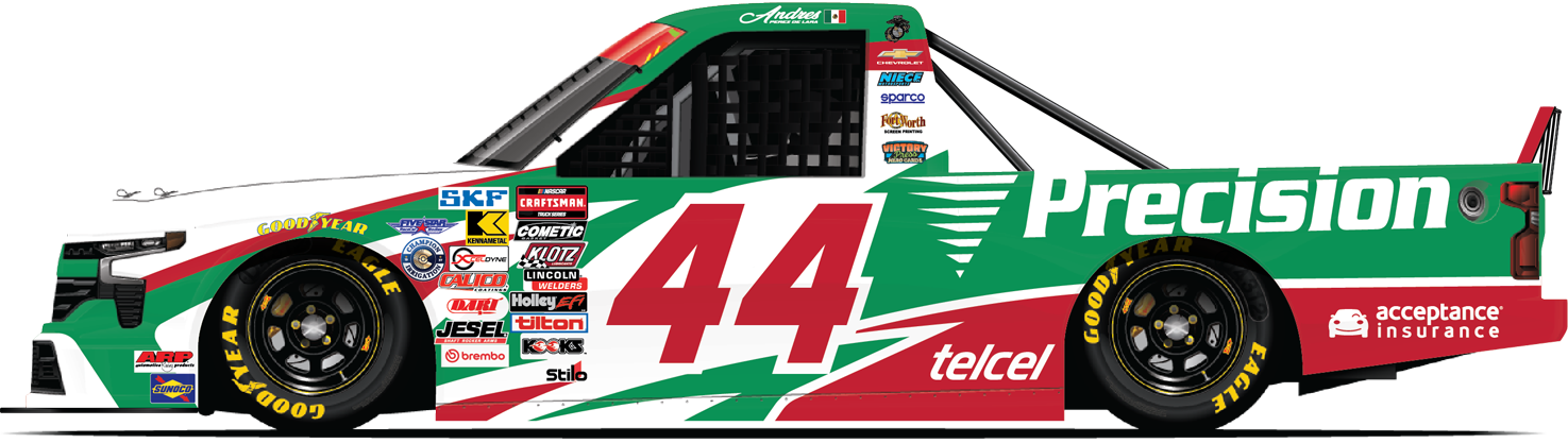 - On the Truck: Pérez de Lara's No. 44 Chevrolet Silverado RST will race with support from Precision Vehicle Logistics De Mexico. The company works directly with auto manufacturers to transport newly-assembled cars and trucks to dealerships.
