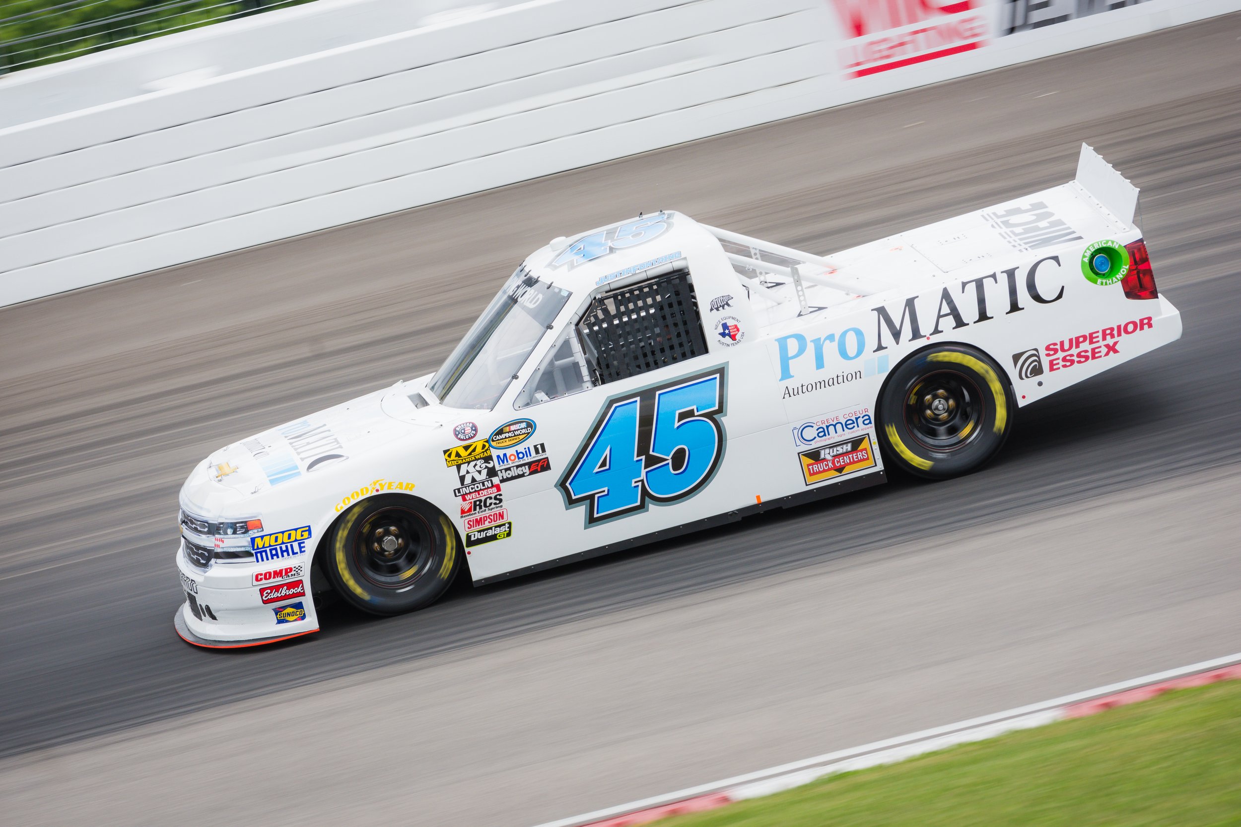 Justin Fontaine - Villa Lighting delivers the Eaton 200 presented by CK Power Race RecapGateway (Ill.) Motorsports ParkTeam: No. 45 ProMATIC Automation Inc. | Superior Essex Chevrolet SilveradoDriver: Justin FontaineFollow the Team: @NieceMotorsport; @driverfontaineStart: 21stFinish: 26th; Accident (113 | 160 laps completed)Driver Points Position: 17th (-2 positions) | Owner Points Position: 21st (-1 position)Justin Fontaine Quote: “It was a big weekend of learning from start to finish. We made some huge strides from practice to qualifying and even during the first two stages of the race.“We made a call for track position and found ourselves inside the top-10 when another truck laid some fluid down and the track became incredibly treacherous and I just couldn’t control the truck in the oil.“I feel bad that Tate (Fogleman) and others were collected in that mess. I wish the caution flag would have come out sooner, we might have had different circumstances.“Still, I’m proud of Cody (Efaw, crew chief) and this Niece Motorsports team. We were running very well and making improvements. We’ll try and build on that at Chicagoland next Friday night."Next Up: Overton’s 225 at Chicagoland Speedway on Fri., June 29, 2018.For more on Justin Fontaine, please visit JustinFontaine.com, like his Facebook page (Justin Fontaine) or follow him on Twitter @driverFontaine.