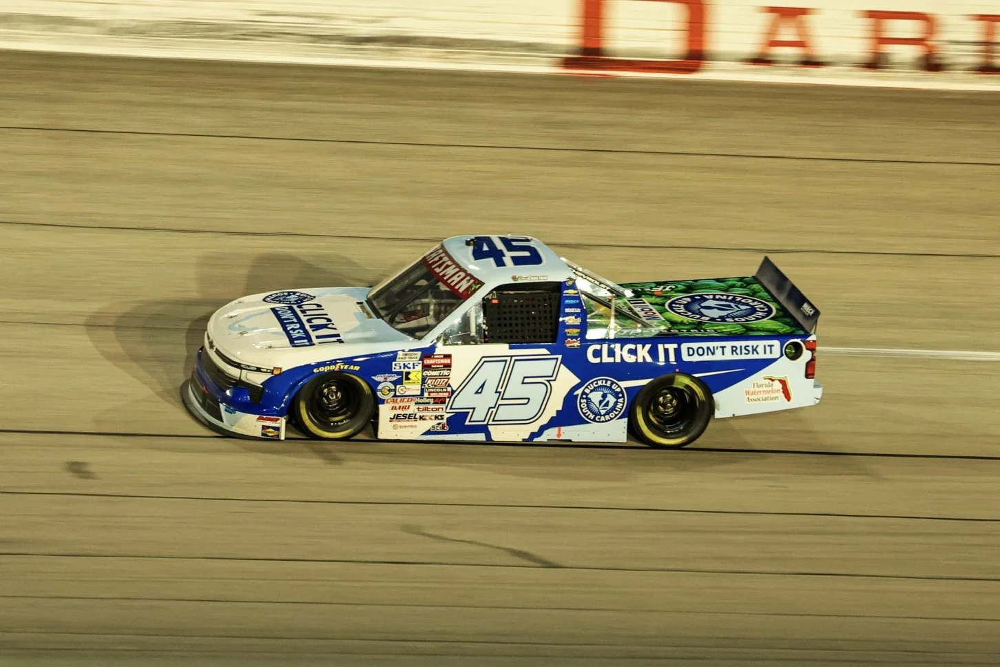 So I think that’s on us as a whole that we didn’t catch that. Of course, I would have ran the bottom if I thought he was even going to be close, but I just thought he had a good restart. Bummer. We’re kicking off Florida watermelon season right around now, so you know, it’s a good time to get back in this truck and start off the weekend well.”